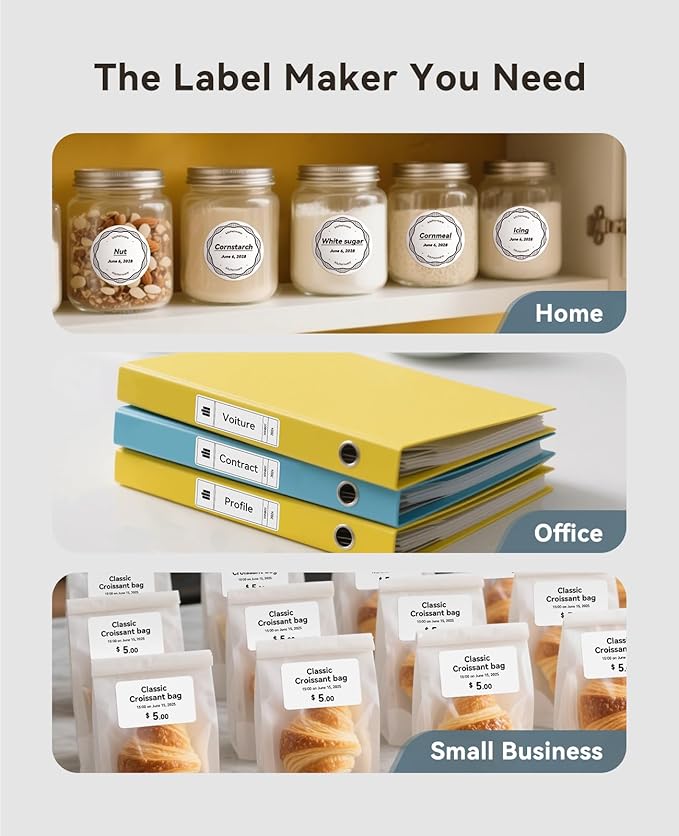 - Multi-scene Use: It's widely used in small businesses, coffee shops, bakeries, retail, the food industry, jewelry, etc. for price labels, addresses, jars, DIY, barcodes, dates, ingredients, and product labeling. It is for various labeling needs and brings convenience to work and life