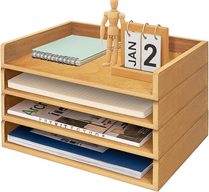 - 【Versatile, Professional, and Ready to Use】Ideal for offices, home workstations, classrooms, or reception areas—this set includes 4 fully assembled wooden trays ready to use right out of the box. Whether you're streamlining your workflow or upgrading your workspace style, this paper tray set offers the organization you need with the quality you deserve.