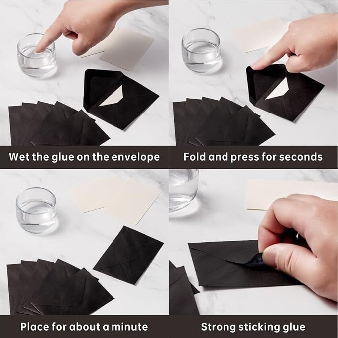 - Effortless Sealing: These envelopes feature a quick self-adhesive strip for easy sealing. Simply wet the glue on the sealing area, fold it over, and hold for about 1 minute to secure your cards inside. No need for additional tape or glue, saving you time and hassle.
