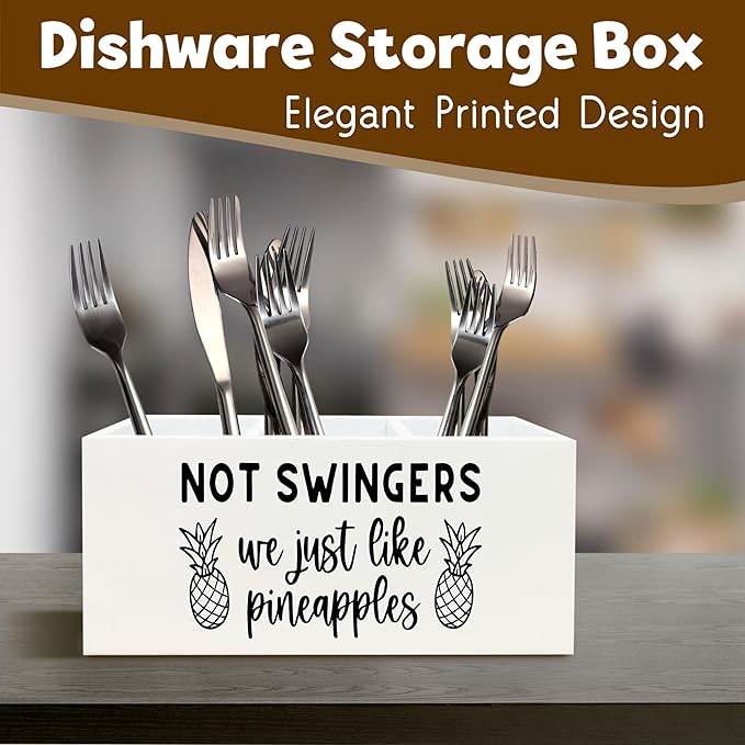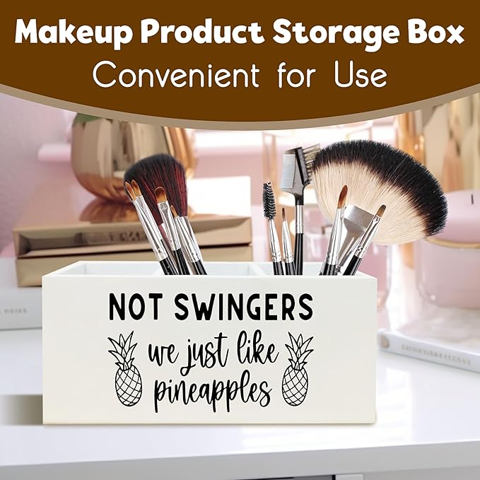 Funny Office Desk Pen Holder, Not Swingers We Just like Pineapples Decor for Home Humor Gifts, Funny Gifts for Women Men Wooden Pencil Holder Organizer for Desk Accessories