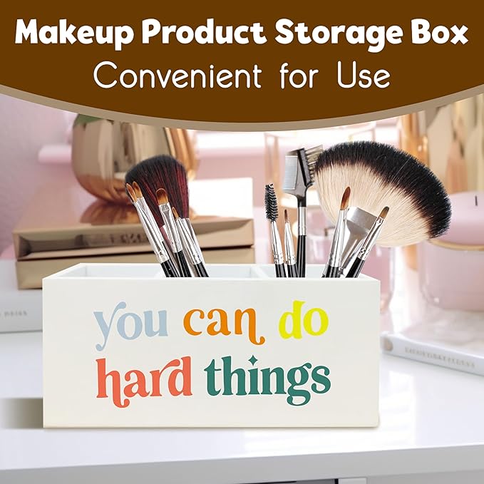 You Can Do Hard Things Desk Pen Holder, Inspirational Decor for Nursery School Psychologist Mental Health Therapy Office Desk, Positive Wooden Pencil Holder Organizer for Office