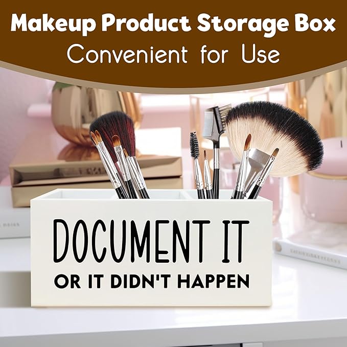 Funny Pen Holder for Desk, HR Human Resource Office Decor, Office Humor Gifts for Coworkers, Document It or It Didn't Happen Wooden Pen Pencil Holder Organizer for Desk Accessories