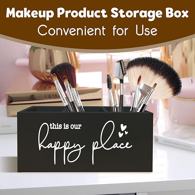 Inspirational Quote This is Our Happy Place Rustic Porch Bathroom Kitchen Decor Wooden Pencil Holder Organizer for Home Office Accessories Inspirational Desk Pen Holder,Housewarming Gifts