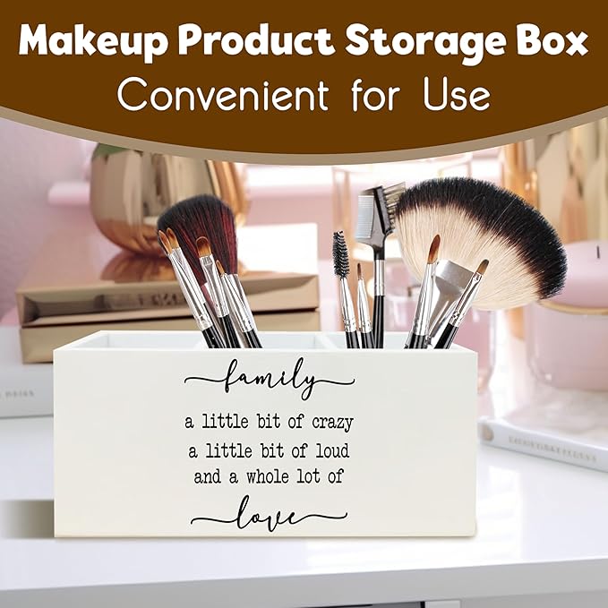 Family Signs Wooden Pen Holder for Home Decor Farmhouse Desk Shelf Decorations for Shelf Decorations, Family a Little Bit of Crazy Rustic Desk Decor for Home Office Table Pencil Holder