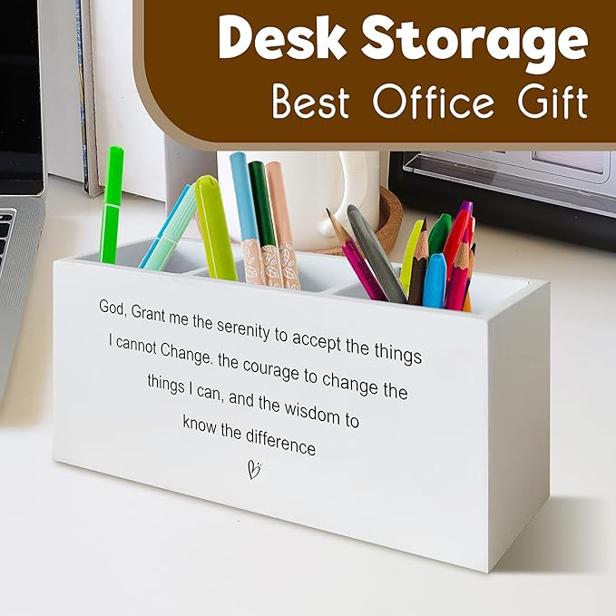 Inspirational Christian Pen Holder for Desk, Christian Gifts for Women Men, Motivational Bible Verse Scripture Wooden Pen Pencil Holder Organizer for Office Desk Accessories