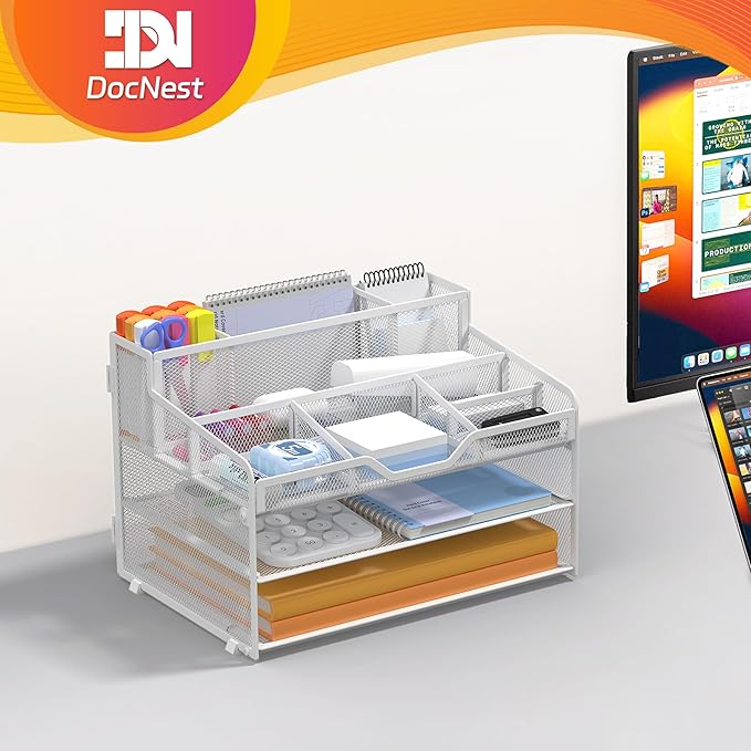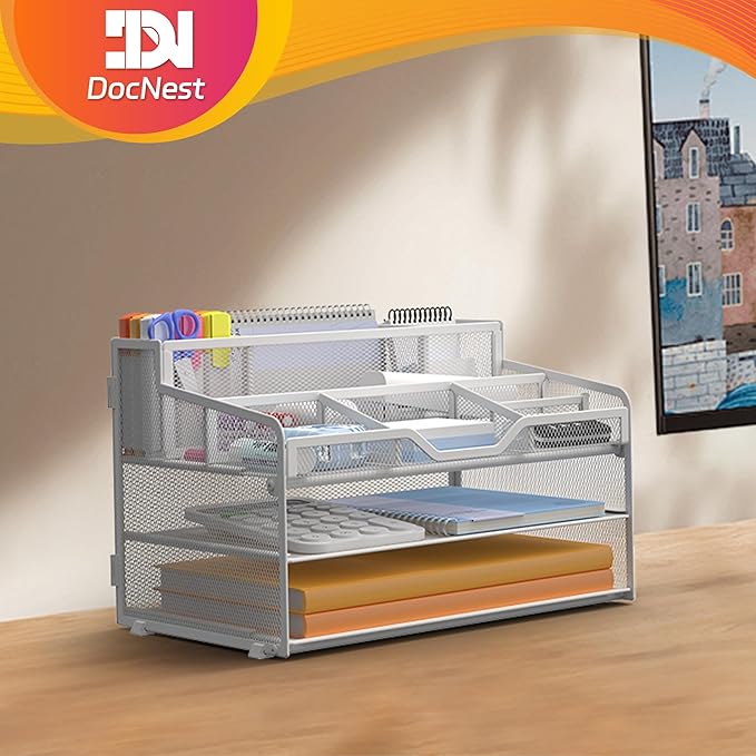 - Easy Assembly and Maintenance: Simplify your office organization with the DocNest tray organizer, which is easy to assemble and maintain. Its modular design allows for quick setup, and the mesh compartments are easy to clean, ensuring that your workspace remains tidy and organized with minimal effort. This desktop organizer is a breeze to maintain, saving you time and effort in keeping your office space pristine