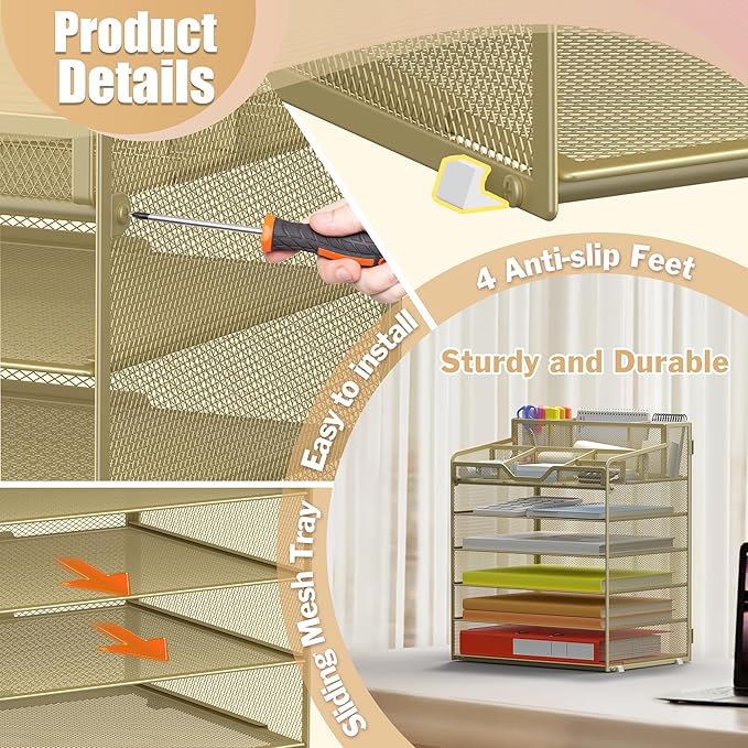 - Maximize Your Workspace Efficiency: Upgrade your office organization with the DocNest 6-tier paper letter tray organizer. This multi-functional desk organizer is designed to keep your documents, papers, and office supplies neatly sorted and easily accessible. With 5 adjustable compartments, you can customize the space to fit your needs, whether it's for files, stationery, or other essentials