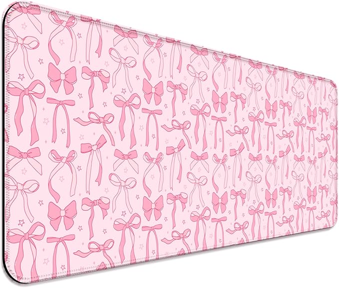 Pretty Bow Girly Gaming Desk Mat, Computer Keyboard Large Extended Long Mouse Pad for Office and Home, XL (W24)