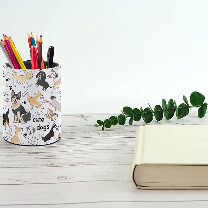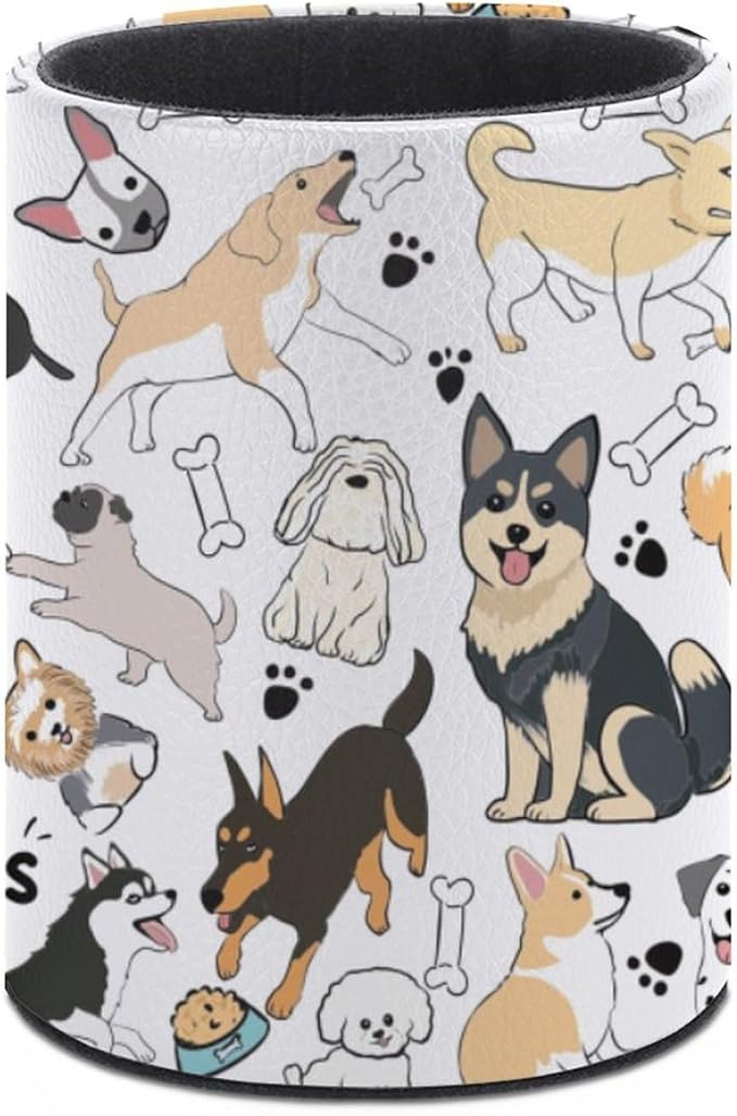Cute Dogs Pen Holder Pencil Organizer Cute Pencil Cup Desk Decor Makeup Brush Holder PU Multifunctional Office Suppliesfor Home Classroom School