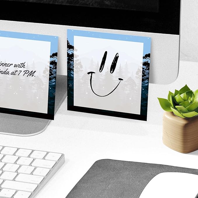 Sticky Notes, 2 Pads, 3x3 inches, Cute Colorful Fun Self-Stick Note Pads, Easy Post, Strong Adhesive Notepad Tree and Mountain
