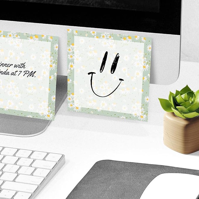 Sticky Notes, 2 Pads, 3x3 inches, Cute Colorful Fun Self-Stick Note Pads, Easy Post, Strong Adhesive Notepad Green Daisy Field