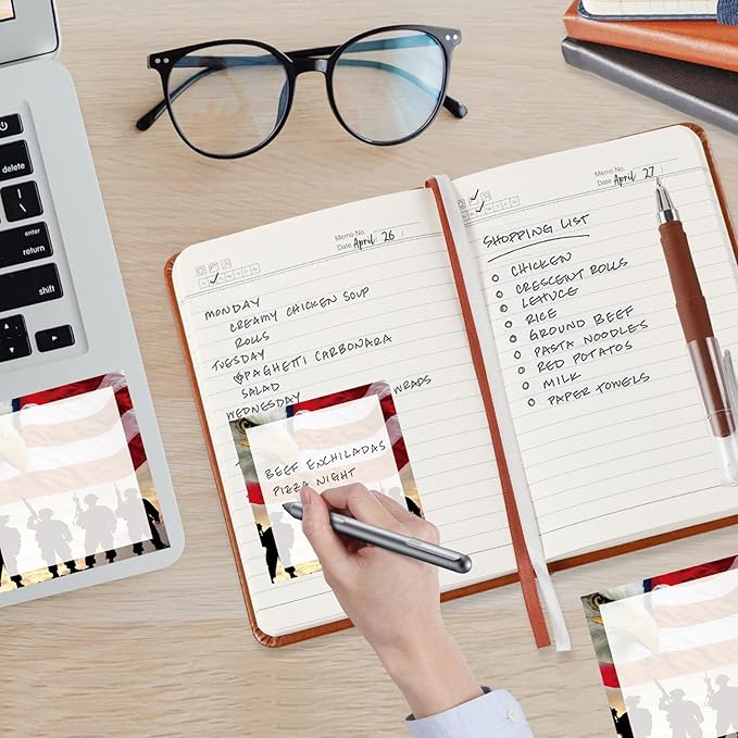 Sticky Notes, 2 Pads, 3x3 inches, Cute Colorful Fun Self-Stick Note Pads, Easy Post, Strong Adhesive Notepad Eagle Flag Soldiers