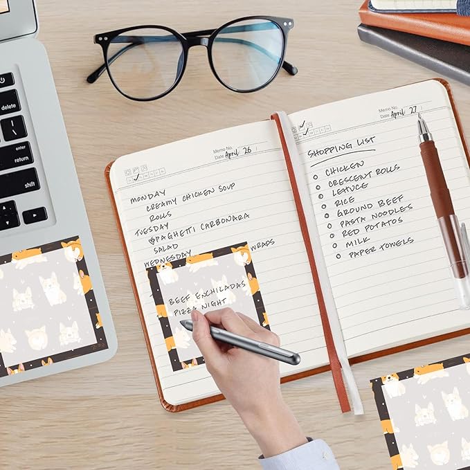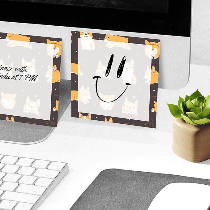 Sticky Notes, 2 Pads, 3x3 inches, Cute Colorful Fun Self-Stick Note Pads, Easy Post, Strong Adhesive Notepad Corgi Dog Pattern