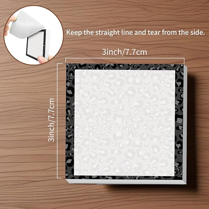 Sticky Notes, 2 Pads, 3x3 inches, Cute Colorful Fun Self-Stick Note Pads, Easy Post, Strong Adhesive Notepad Black Leopard Spots