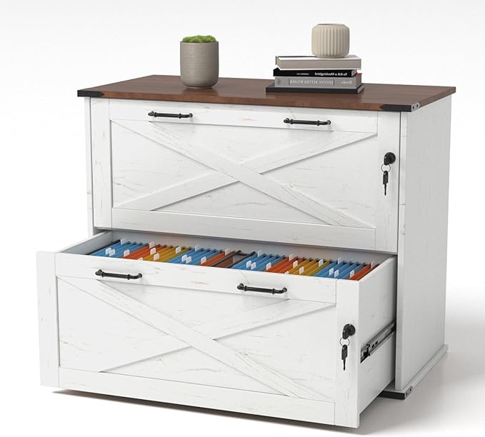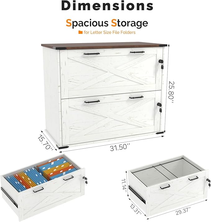 - 【Charming Farmhouse Style】This file cabinet, with its barn door elements and ingenious appearance design, showcases unique charm and stands out, adding farmhouse charm to your home while also being able to enliven any office, study or living room.