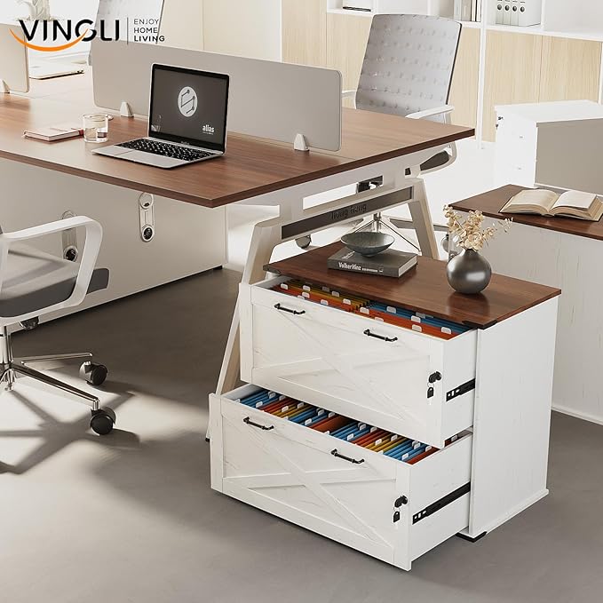 VINGLI 2 Drawer File Cabinet with Lock, Home Office Filing Organizer, for Letter Legal A4 Size File Folder Storage, Modern Farmhouse, Wood Lateral Filing Cabinet, Archivador (Rustic White & Brown)