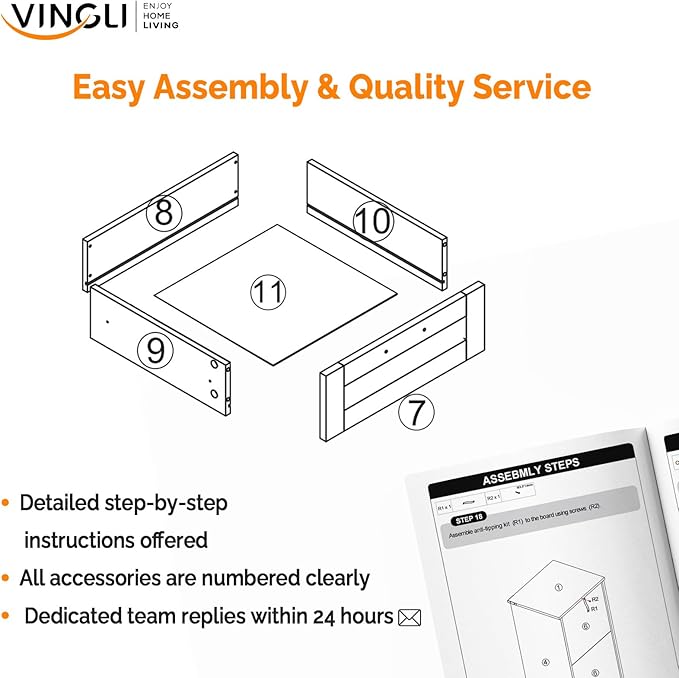 - 【Easy Assembly & Outstanding Service】Detailed step-by-step instructions are provided, and all accessories are clearly numbered. Fear not the assembly process. In case of any installation problems, simply notify us. We will respond within 24 hours.