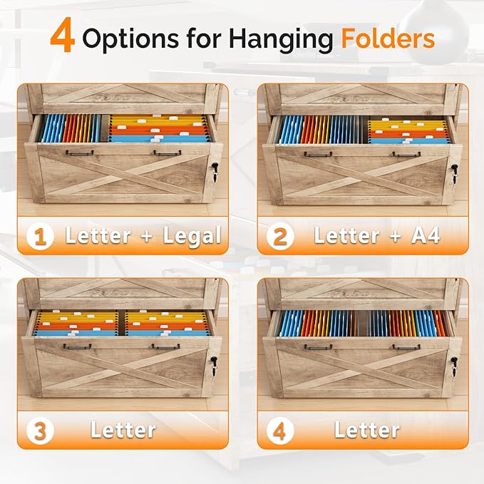 - 【Lockable for Privacy】The 2 large drawers for hanging folders can be independently locked, and each lock is accompanied by 2 keys for added security.