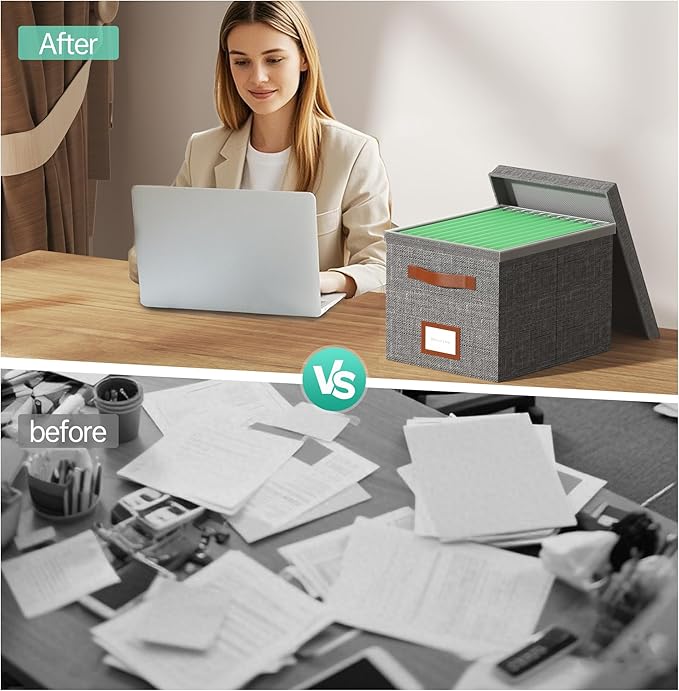 - [Multifunctional Usage Scenarios, Strong Adaptability]- This file storage box is suitable for a variety of scenarios, whether it is home or office, it can play its powerful storage function. In the home, it can be used in places such as study, living room, bedroom, etc. to store books, magazines, documents and other items, keeping the home environment clean and orderly. In the office, it can be used in places such as desks and filing cabinets to help you organize work materials efficiently and improve work efficiency.