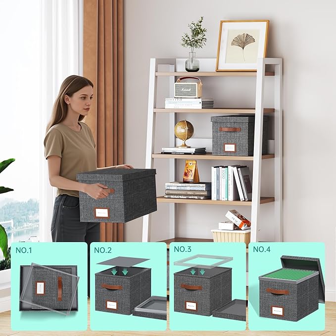 - [Foldable Design, Save Space]- The file storage box adopts an innovative foldable design. When it is not needed, it can be easily folded into a flat shape for easy storage and carrying. This design not only saves valuable space, but also makes the storage box more flexible and convenient when moving or temporarily using it.