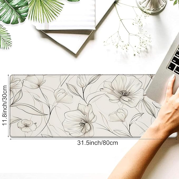 Desk Pad, Boho Minimalist Flowers XL Gaming Mouse Pad with Stitched Edges,Non-Slip Waterproof Rubber Base Large Desk Mat for Keyboard and Mouse 31.5"x11.8"