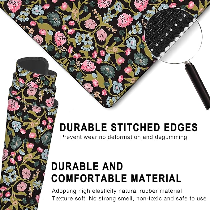 Gaming Mouse Pad, Vintage William Morris Floral Large Desk Mat for Keyboard and Mouse,Non-Slip Rubber Base and Stitched Edges Desk Pad for Home Office 35.4x15.7in