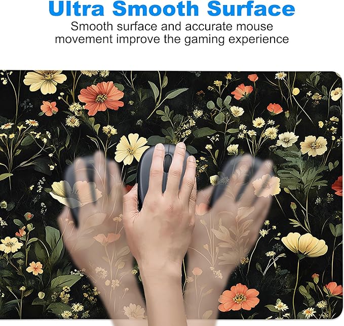 Desk Pad, Colorful Wildflowers Floral XL Gaming Mouse Pad with Stitched Edges,Non-Slip Waterproof Rubber Base Large Desk Mat for Keyboard and Mouse 31.5"x11.8"