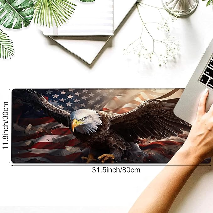 Desk Pad, American Flag and Bald Eagle XL Gaming Mouse Pad with Stitched Edges,Non-Slip Waterproof Rubber Base Large Desk Mat for Keyboard and Mouse 31.5"x11.8"