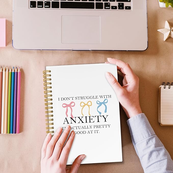 Coquette Bow Mental Health Spiral Notebook, Inspirational Journaling Notebooks for Women, Anxiety Relief Hardcover Journals for Office 160 Pages 5.5 x 8.3 Inch, Anti Anxiety Gifts for Girls