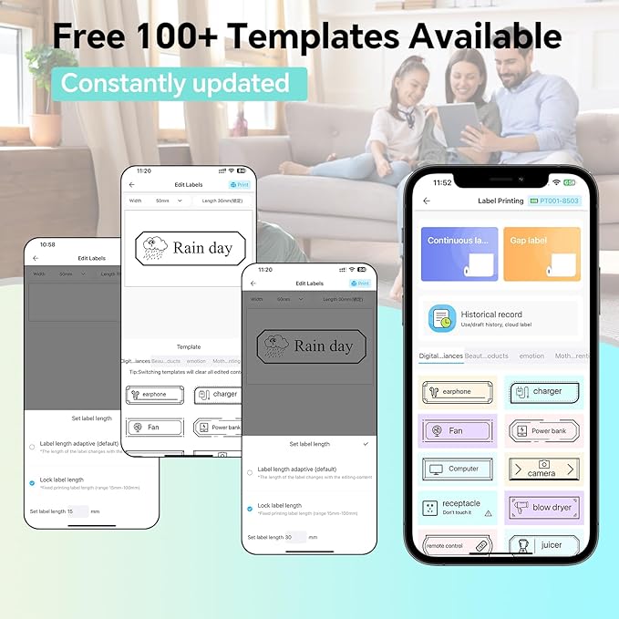 - Smart App Integration with Creative Tools:Connect seamlessly via Bluetooth to the iPrint app, available for iOS and Android. Enjoy a wide range of fonts, symbols, borders, and templates to design personalized labels with ease. Whether you're organizing office files, crafting DIY gifts, or labeling products, this app makes it fun and simple.