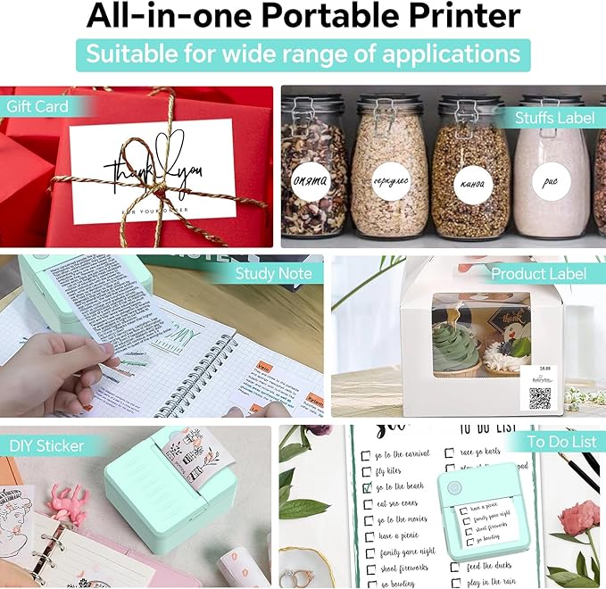 - Customizable Labels for Every Need:This versatile label maker machine with tape supports a variety of label sizes — perfect for both label printing and photo printing. With 203 DPI high resolution, every print comes out crisp, clear, and professional-looking. Great for home organization, journaling, school, or product labeling.