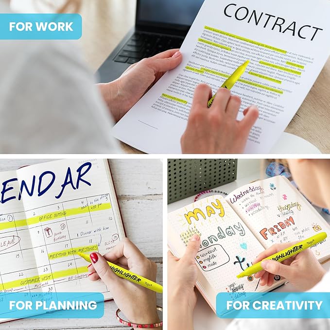 - Highlight Anything, Anywhere - Ideal for textbooks, workbooks, planners, journals, and more. This all-yellow pack ensures consistent color across your entire workflow—great for studying, teaching, or organizing with clarity.