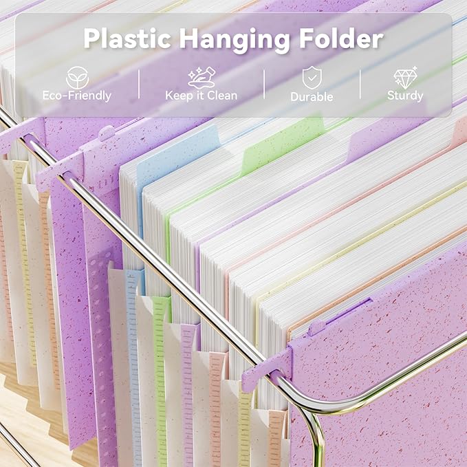 - 【Natural Colored File Folders】:ANSOOK Hanging file folders with tabs features 3 natural colors: Pink, Purple, Blue. Equipped with tearable colored label papers for easy custom classification and quickly locate any document. The gentle hues brighten your space and promote a happier, more productive mood