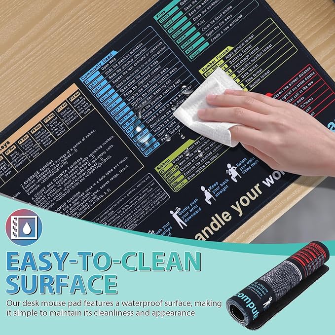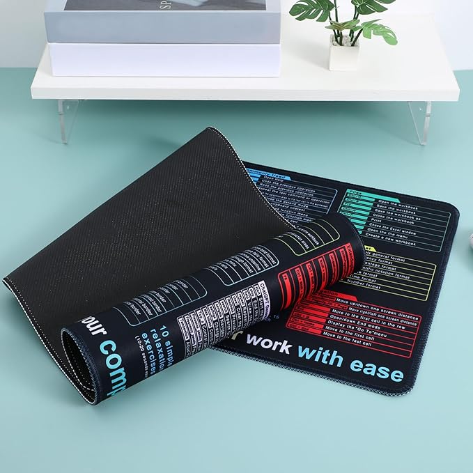 - Large surface: Our desk pad features a large surface area that provides ample space for both your keyboard and mouse. You can use your mouse freely. It includes practical information and keys to help you work more efficiently on your daily tasks.
