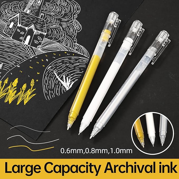 - Perfect Gift for Creative Minds: Packaged in a sleek set, these metallic gel pens make unforgettable gifts for birthdays, Christmas, or New Year’s. Whether your recipient is a pro artist or a beginner exploring dark paper art, this set unlocks limitless possibilities.