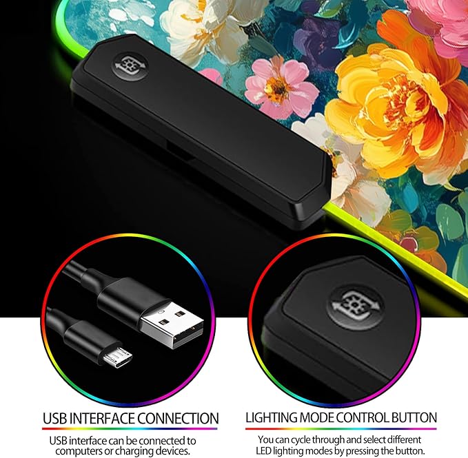 - 【CONVENIENT USB INTERFACE】: Simply plug the RGB mouse pad into an available USB port on your computer to instantly activate vibrant LED lighting, adding vivid visual effects to your work and entertainment experience.