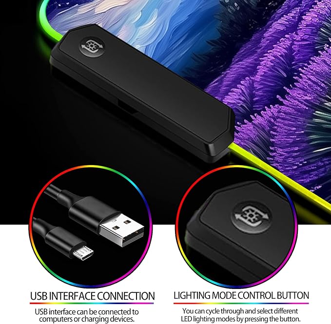- 【CONVENIENT USB INTERFACE】: Simply plug the RGB mouse pad into an available USB port on your computer to instantly activate vibrant LED lighting, adding vivid visual effects to your work and entertainment experience.