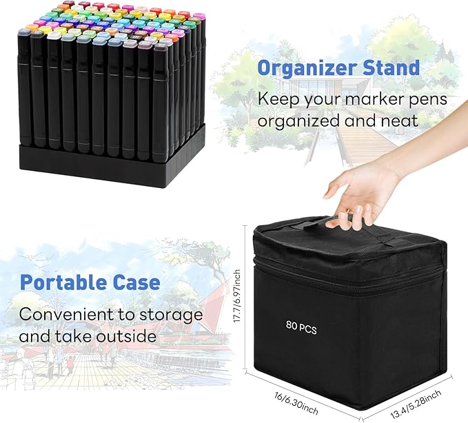 - Portable & Organized: Our drawing marker set includes a convenient base tray for neat storage and a stylish black carrying case. This ensures that your markers are always organized, and can be easily transported, making it convenient for you to take your creativity on the go