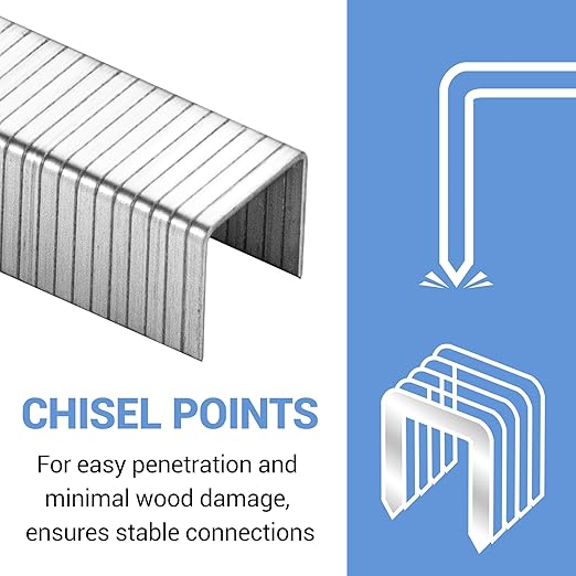 - [Durable Upholstery Staples] Made of high quality galvanized steel. Flat wire staples with sharp chisel points for easy penetration and strong fixing power, smooth and jam-free operation in your t50 staple gun. Ensure your projects are completed efficiently