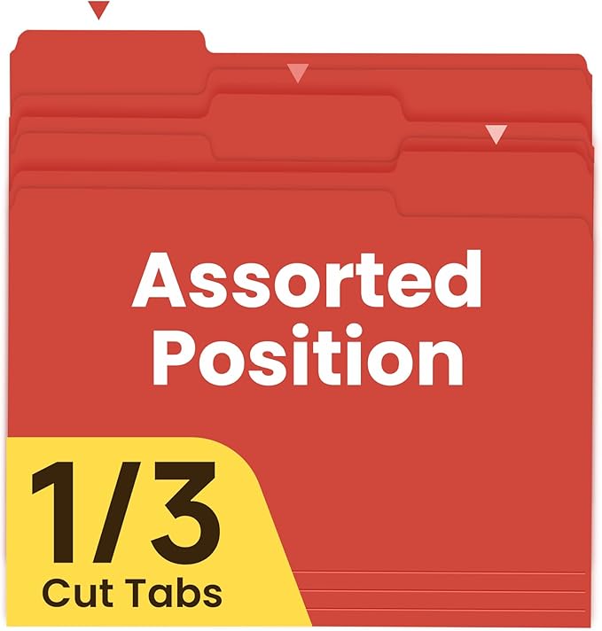 - 1/3 Cut Tabs for Easy Labeling: Each folder features a 1/3 cut tab in three positions: left, center, and right, offering ample space for labeling and simplifying document navigation.