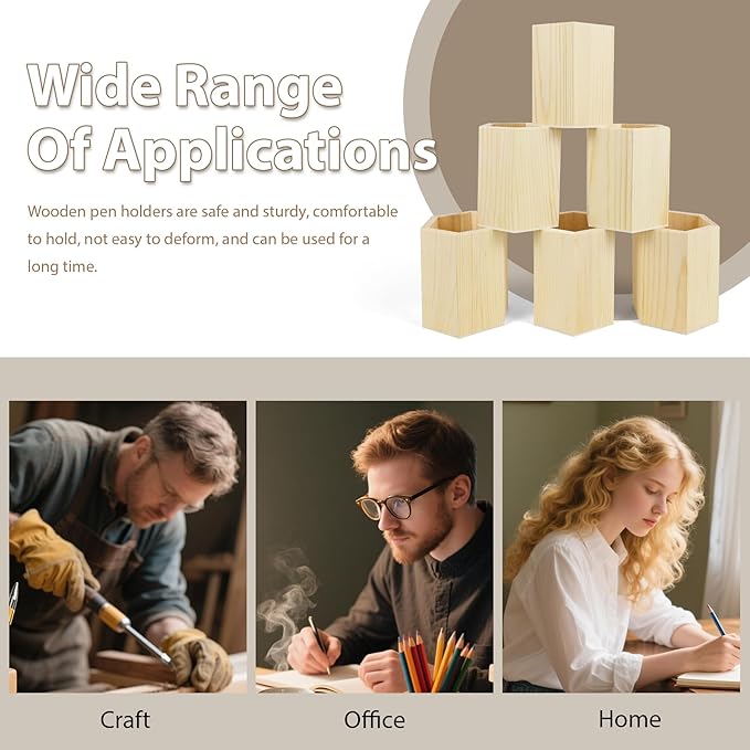 - Value Set: Each set includes 6 pine wood pencil holders, making it easy to organize multiple desks or work areas. Thoughtfully packaged as a set, this bundle offers both functionality and convenience. The unfinished natural wood and minimalist style effortlessly complement a variety of interior decors