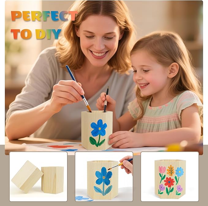 - Simple Diy Design: Crafted with a clean and minimalist look, this pencil holder set is perfect for DIY projects. Available in 3 shapes—round, square, and hexagon—the unfinished pine wood showcases raw grain and texture. Personalize with paints, markers, beads, rhinestones, or other craft materials to match your unique style
