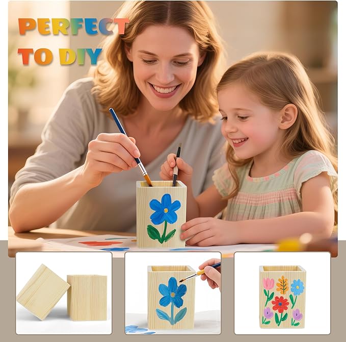 - Simple Diy Design: Crafted with a clean and minimalist look, this pencil holder set is perfect for DIY projects. Available in 3 shapes—round, square, and hexagon—the unfinished pine wood showcases raw grain and texture. Personalize with paints, markers, beads, rhinestones, or other craft materials to match your unique style