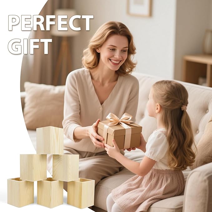 6 Pack Wood Pen Holder Unfinished Wooden Pencil Holder Pine Wood Pen Holder Stand for Desk Office Supplies Makeup Brushes Organizer (Square)