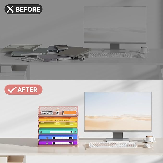 - 【STYLISH OFFICE SUPPLIES】This paper tray is available in multiple colors to match different office styles. Not only the desk organizer tray save space for your workspace, but its stylish design makes your office look more professional.