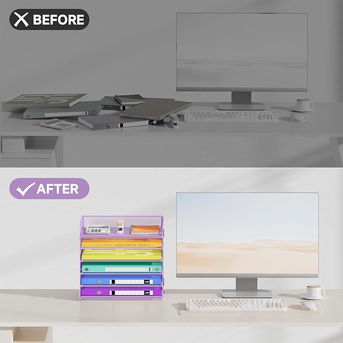 - 【STYLISH OFFICE SUPPLIES】This paper tray is available in multiple colors to match different office styles. Not only the desk organizer tray save space for your workspace, but its stylish design makes your office look more professional.