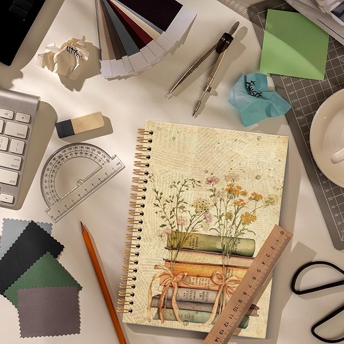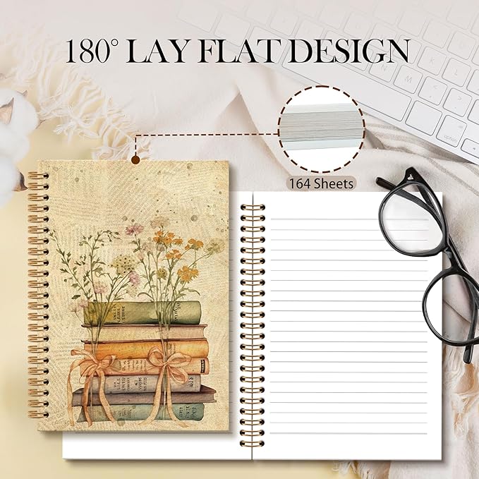 Book Floral Notebook Journal - Vintage Floral Journal, Vintage Flower Bow Book Lovers Spiral Notebook, Vintage Notebooks Gifts for Women, Book Lovers Gifts School Office Supplies, 6x8.2In