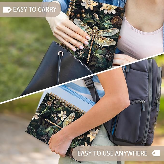 Dragonfly Gifts Notebook Journal Dragonfly Gifts for Women Spiral Notebook, Vintage Floral Botanical Dragonflies Notebooks Gifts for Women Girls, Dragonflies School Office Supplies, 6x8.2In