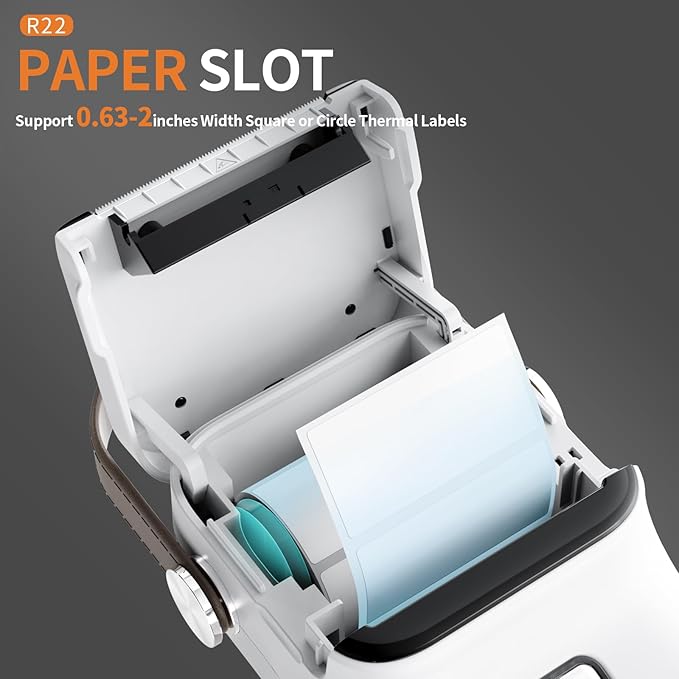 - Print crisp, professional labels effortlessly! This mobile label printer boasts 203 DPI high resolution, ensuring your labels are always clear, smooth, and easy to read—perfect for home, office, or on-the-go use. Also,the label rolls feature built-in RFID chips, enabling automatic label size detection by R22 label maker machine.