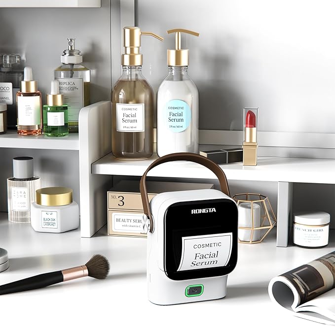 Rongta Bluetooth Label Maker Machine with Tape,Portable Wireless Labeler Machine,Handheld Sticker Maker for Barcode Labels,Home School Supplies,USB Rechargeable,Compatible with iOS/Android, White